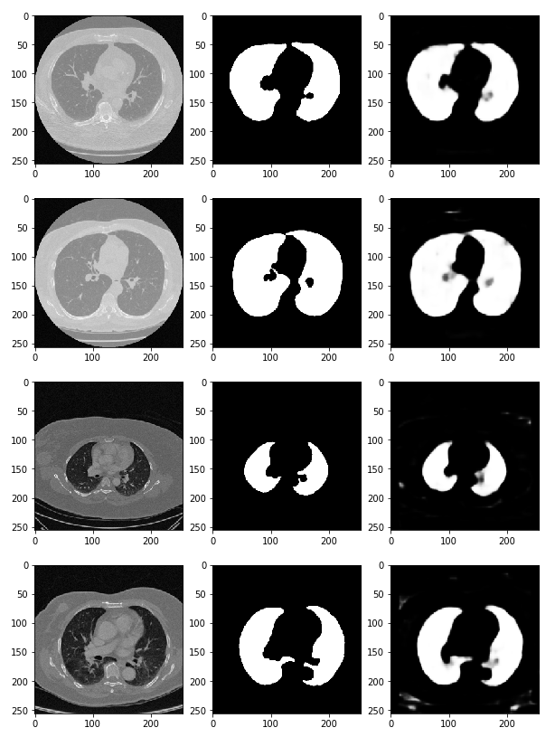 # .npy 파일을 load 한다. x_train = np.load('dataset/x_train.npy') # CT 이미지 y_train = np.load('dataset/y_train.npy') # 폐 영역 마스크 이미지 x_val = np.load('dataset/x_val.npy') # validation 이미지 로드 y_val = np.load('dataset/y_val.npy')