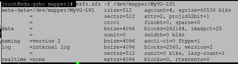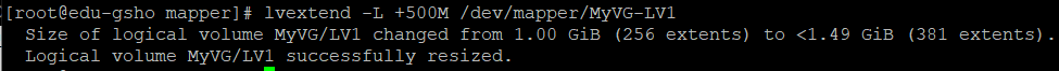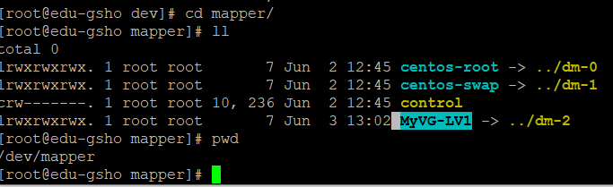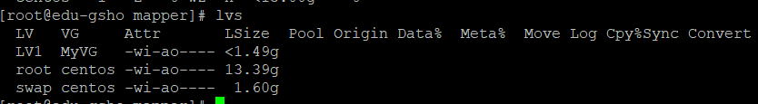 /dev/mapper 에 MyVG 디바이스가 생성된 것을 확인할 수 있다.