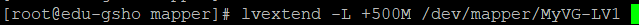 xfs_growfs /dev/mapper/MyVG-LV1 명령어로 적용.