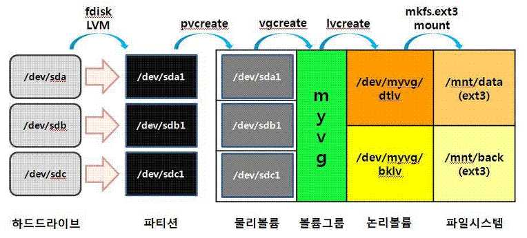 일반적인 파티션 단계에서는 개별적인 디바이스에서만 사용할수 있었다 하면