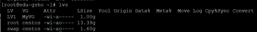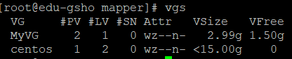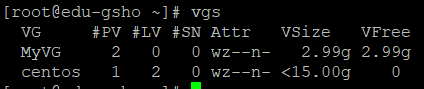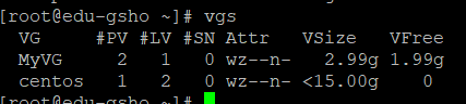 vgs라는 명령어로 볼륨그룹을 확인할 수 있다.