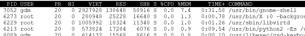 top 이라는 명령어로 작업관리자를 볼 수 있다.