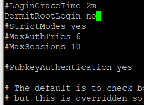 - ‘PermitRootLogin no’ 설정 확인 – ‘wq!’ 명령어로 저장 후 종료